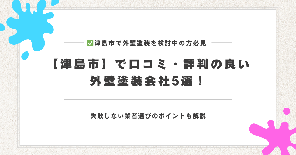 この記事では、津島市で外壁塗装を検討している方に向けて、口コミ・評判の良い外壁塗装会社を5社紹介します!
